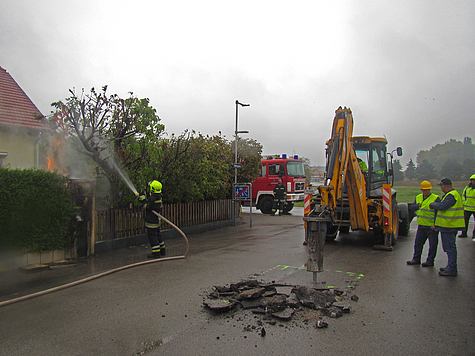 Nach Freilegen der betreffenden Gasleitung wurde diese abgeklemmt und verschlossen. Danach erst konnte das Feuer restlos abgelöscht und um 14:30 Uhr Brand Aus gegeben werden.