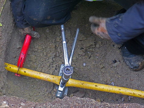 Nach Eintreffen des Energieversorgers wurde festgestellt, dass für diesen Bereich kein Gasschieber vorhanden ist, und deshalb die Straße geöffnet werden muss, um an die Hauptleitung zu gelangen.
