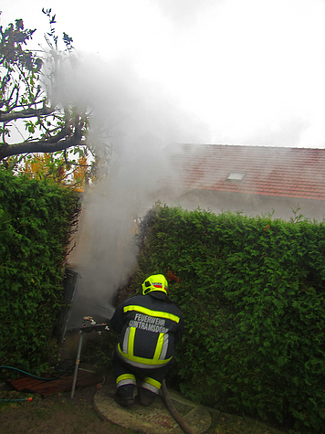 Um 10:33 Uhr wurde die FF Guntramsdorf und die BTF AXALTA mittels Sirene und Pager zu einem Trafobrand in die Hafergasse alarmiert. Bei Eintreffen der ersten Kräfte stand der E-Verteiler bereits in Vollbrand.