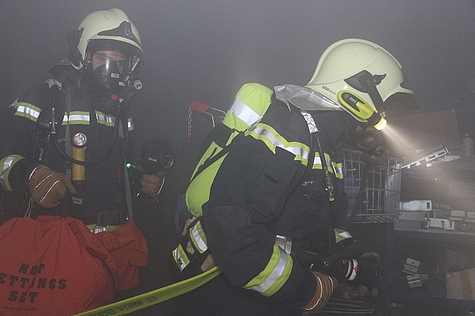 Gegliedert in mehrere Einsatzabschnitte, wurden die Bereiche "Menschenrettung", "Brandbekämpfung", "Druckbelüftung", "Schadstoff" und "Schutz der angrenzenden Gebäudeteile" abgedeckt und gemeinsam, durch die gemischten Mannschaften aller drei Feuerwehren, abgearbeitet.