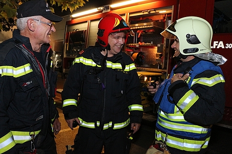 Einige Funktionäre aus dem Bezirk, an der Spitze Abschnittsfeuerwehrkommandant Brandrat Wolfgang Deringer (FF Maria Enzersdorf), überzeugten sich vor Ort von der guten Zusammenarbeit und der massiven Schlagkraft der eingesetzten, ehrenamtlichen Mitglieder, bevor die heurige Übung für den Unterabschnitt 4 Mödling-Wienerwald im Feuerwehrhaus Brunn am Gebirge nachbesprochen und bei einer gemeinsamen Jause abgeschlossen wurde.