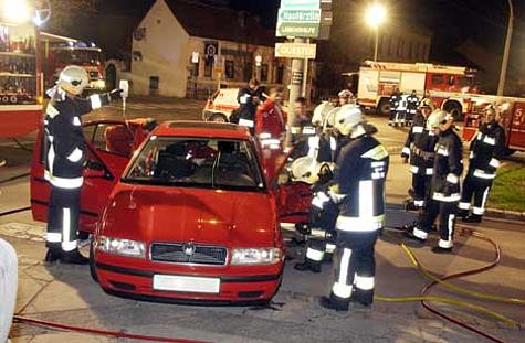 Zwei Minuten nach der Alarmierung waren bereits die Kameraden der Freiwilligen Feuerwehr Mödling und unmittelbar darauf auch der Notarzt am Unfallort. Die Unfallstelle wurde abgesichert und nach der ärztlichen Erstversorgung des Verletzten wurde dieser von seinen Feuerwehrkameraden aus dem Fahrzeug befreit. Dazu mussten sowohl die Fahrer-, als auch die Beifahrertür, sowie die B-Säule des Fahrzeuges mit hydraulischen Rettungsgeräten (Schere und Spreizer) entfernt werden.