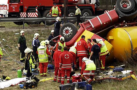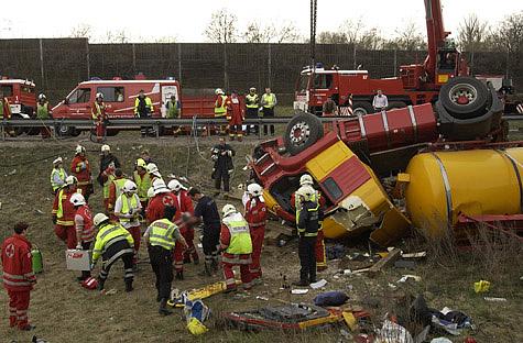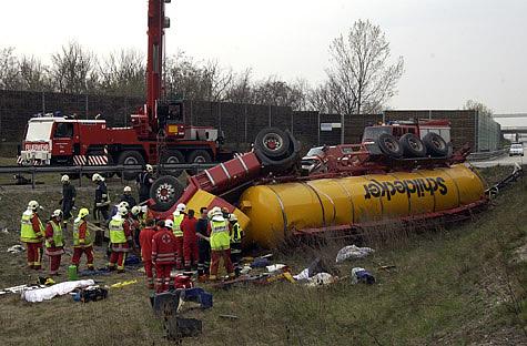 Nach mehr als eineinhalbstündiger fieberhafter Arbeit von Feuerwehr und Rotem Kreuz ist es gelungen, den eingeklemmten Lkw-Lenker des auf der A2-Ausfahrt Wr. Neudorf umgestürzten Tankwagens zu befreien.