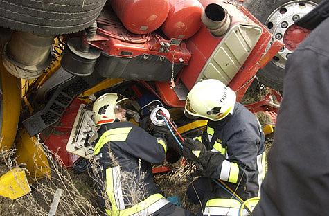 Zwei Teams der Feuerwehren Wiener Neudorf und Mödling arbeiteten mit schweren hydraulischen Rettungsgeräten von zwei Seiten, um den Schwerverletzten zu befreien. Zusätzlich war es notwendig, den Tankwagen mit Hilfe des Feuerwehrkrans Mödling anzuheben.