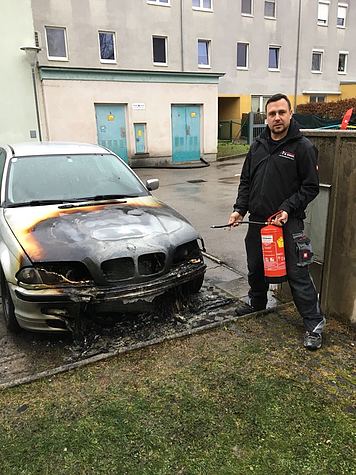 Dem raschen und zielgerichteten Vorgehen des Mitarbeiters der Fa. Wienerl ist es jedenfalls zu verdanken, dass der Pkw nicht in Vollbrand geraten konnte und somit eine Beschädigung der daneben parkenden Fahrzeuge bzw. ein Übergreifen des Brandes auf dieselben verhindert wurde.