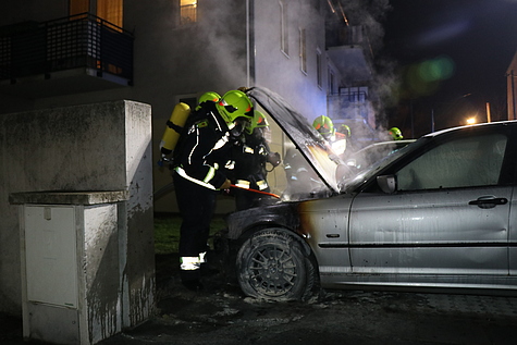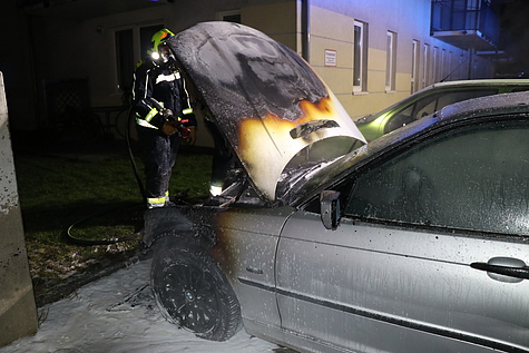 Im Motorraum eines Pkw hatte es aus unbekannter Ursache zu brennen begonnen. Durch das beherzte Eingreifen von Gerhard S., einem Mitarbeiter der Firma „Wienerl-Feuerlöschtechnik“, mit mehreren Handfeuerlöschern, konnte der Brand bis zum Eintreffen der Feuerwehr in Schach gehalten werden. Nach dem Öffnen der Motorhaube wurde der Brand von den Einsatzkräften unter Verwendung Atemschutzgeräten durch Vornahme einer Löschleitung schließlich rasch abgelöscht.