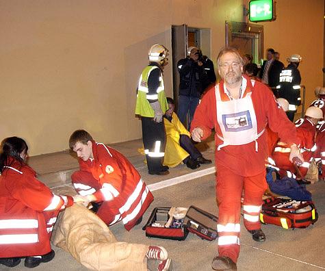 Die Übung lief unter höchst realistischen Bedingungen ab, alle „Verletzten“ – hauptsächlich Präsenzdiener des Bundesheeres – waren von Experten des Roten Kreuzes perfekt geschminkt worden.