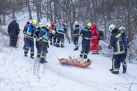 Um ca. 15:30 Uhr wurde die Feuerwehr Mödling zur Unterstützung des Roten Kreuzes bei der Rettung einer verletzen Patientin im Mödlinger Wald alarmiert. Eine an der Schulter bzw. am Arm verletzte Frau konnte bei dem extrem eisigen Waldweg an der Goldenen Stiege nach dem Sturz den Rückweg nicht alleine fortsetzen.