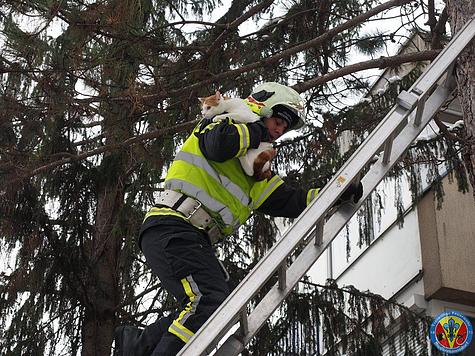 Mit Steckleitern wurde der Kater aus seiner misslichen Lage befreit und wieder an seine glückliche Besitzerin übergeben. Anschließend konnten die eingesetzten 15 Mitglieder mit 3 Fahrzeugen wieder zu Ihren Samstagsbeschäftigungen übergehen.