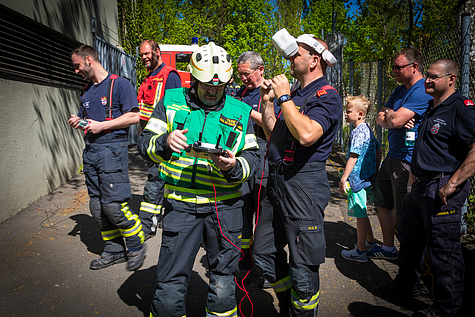 Bei der heutigen Übung galt es, zuerst eine verunfallte Person aus einem Raum zu retten, in dem Wasser mir Chlorgas aufbereitet wird. Diese „Crash-Rettung“ musste rasch passieren und wird von der ersten eintreffenden Feuerwehr unter Atemschutz durchgeführt.