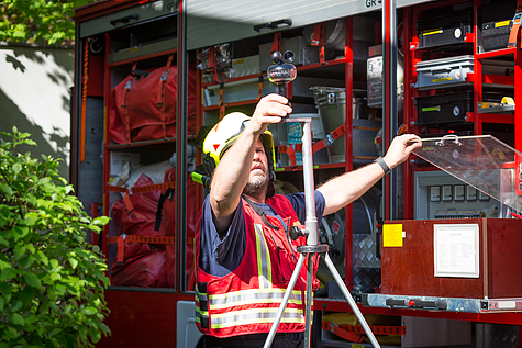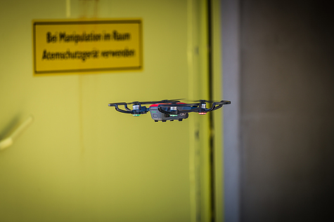 Erstmals kam bei der Übung auch eine handelsübliche Mini-Drohne (300 Gramm schwer, Kosten ca. € 500,- ) zum Einsatz, deren Videobild per Funk zur Einsatzleitung übertragen wird. Dabei sollten die Einsatzmöglichkeiten und Grenzen eines solchen Geräts getestet werden. In der Praxis kann das hochaufgelöste Live-Bild der Drohne erste Informationen über den Schadensfall geben – es lassen sich damit auch Aufschriften auf Behältern oder Gasflaschen lesen, ohne den Gefahrenbereich betreten zu müssen.