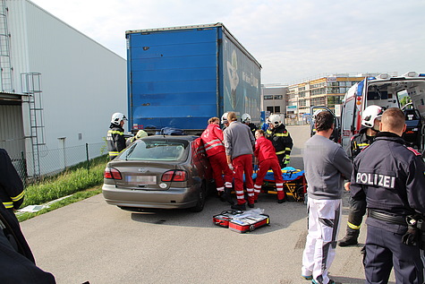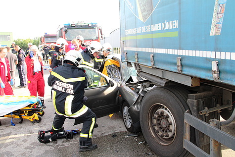 Feuerwehr und Rotes Kreuz befreien verletzten Lenker