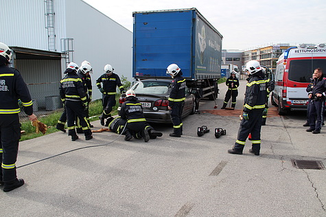 Beim Eintreffen am Einsatzort, an welchem der Rettungsdienst bereits den Patienten versorgte, entschied der Einsatzleiter in Absprache mit der Notärztin die Beifahrertüre mittels hydraulischem Rettungsgerät soweit zu entfernen, dass eine größere Rettungsöffnung geschaffen werden konnte. Im Anschluss wurde der verletzte Fahrer mittels Spineboard in Zusammenarbeit der Einsatzorganisationen aus dem Fahrzeug befreit.