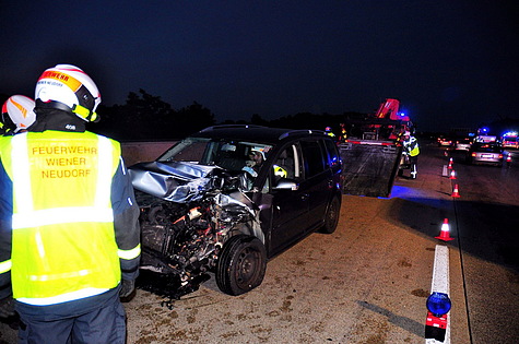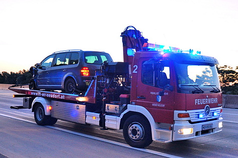 Nach abgeschlossener Unfallaufnahme der Autobahnpolizei führte die Feuerwehr Wiener Neudorf die Bergung der am Unfall beteiligten Fahrzeuge durch. Dabei kam neben dem Abschleppfahrzeug auch das Wechselladerfahrzeug mit dem Abschlepp-Plateau zum Einsatz.