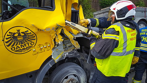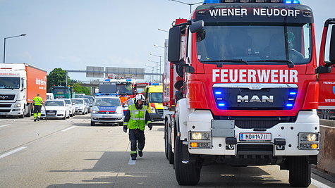 Kurz vor der Ausfahrt Traiskirchen hatte ein Transporter aufgrund einer Reifenpanne an seinem Anhänger angehalten. Ein Abschleppfahrzeug des ÖAMTC war hinter dem Fahrzeug abgestellt und hatte den Anhänger bereits aufgeladen. Zu diesem Zeitpunkt krachte ein Lkw gegen das Pannenfahrzeug und den abgestellten Transporter. Der ÖAMTC-Helfer konnte sich nach eigenen Angaben nur durch einen Sprung zur Seite retten. An allen drei Fahrzeugen entstand erheblicher Sachschaden.