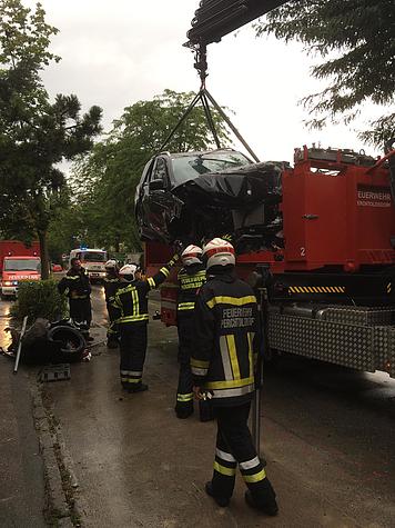 Zu gleich zwei besonders schweren Verkehrsunfällen wurde die FF Perchtoldsdorf am Dienstag, 12.06.2018, durch die Bezirksalarmzentrale Mödling gerufen. Die erste Alarmierung ereignete sich um 16:42 Uhr. Ein Verkehrsunfall zwischen insgesamt drei Fahrzeugen konnte durch die Feuerwehr Perchtoldsdorf nach dem Eintreffen am Einsatzort festgestellt werden. Durch die Wucht des Aufpralls wurde eines der Fahrzeuge durch die Baustellenabsperrung direkt in eine Baugrube geschleudert. Ein Unfallfahrzeug kam von der Straße ab und prallte gegen einen Baum. In weiterer Folge kam auch ein anderes Fahrzeug von der Straße ab und blieb auf einem, auf der Baustelle gelagerten, Sandhaufen stehen. Durch die Feuerwehr Perchtoldsdorf wurden die Fahrzeuge nach der Absicherung der Unfallstelle geborgen. Das nicht mehr fahrtüchtige Kraftfahrzeug wurde mit dem Wechselladefahrzeug aufgeladen und alle Fahrzeuge wurden gesichert abgestellt. Bei diesem Verkehrsunfall wurden mehrere Personen unbestimmten Grades verletzt.