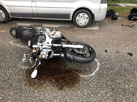 Bei dem zweiten Verkehrsunfall, welcher sich kurz vor 18:00 Uhr ereignete, kam es zu einem Zusammenprall zwischen einem Pkw und einem Motorrad. Hier war es Aufgabe der Feuerwehr, das Motorrad ebenfalls gesichert abzustellen.