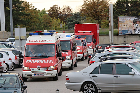 Während der üblichen Öffnungszeiten ist es im Obergeschoß der SCS VÖSENDORF zu einer Verrauchung gekommen, die sich im gesamten Bereich ausgedehnt hat und sukzessive stärker wird. Es wird ein Schwelbrand in der Hallendach-Holzkonstruktion vermutet, der aber noch nicht lokalisiert werden konnte. Es wurde Evakuierungsalarm im Gebäude ausgelöst, weshalb es zu einem gleichzeitigen Abfluss aller Besucher kam. Im abfließenden Verkehr kam es zudem zu einem Auffahrunfall mit Blechschäden. Obwohl die betroffenen Fahrzeuge mittlerweile die Fahrbahn verlassen haben, führte dies zu einem Verkehrskollaps an den Ausfahrtswegen. Die Verletztenlage ist unklar. Es gibt Berichte, wonach nicht alle Besucher den Gefahrenbereich verlassen haben bzw. verlassen konnten. Aufgrund der Verrauchung im Obergeschoß war es aber der Exekutive nicht mehr möglich, die Evakuierung durchzusetzen. Eine abschließende Begehung um sicherzugehen, dass sich keine Zivilpersonen mehr im Gefahrenbereich befinden, konnte nicht mehr durchgeführt werden. Es muss daher aktuell davon ausgegangen werden, dass sich noch Personen im Gefahrenbereich befinden und diese eventuell verletzt sind, den Gefahrenbereich also nicht mehr eigenständig verlassen können. Die besonderen Herausforderungen ergeben sich aufgrund der hohen Anzahl an betroffenen Zivilpersonen, der Weite des Gefahrenbereichs und der mangelnden Aufstellflächen und schwierigen Verkehrsverhältnissen. Da zufällig zeitgleich eine Gesamtübung der 14. KHD-Bereitschaft stattfand und damit die Kräfte bereits formiert waren und aufgrund der erwarteten Dimension des Einsatzes wurden durch BFKdt LFR Richard FEISCHL in Abstimmung mit dem örtlichen Einsatzleiter der BTF SCS (HBI Robert HEINDL) die Züge I./14 und III./14 der 14. KHD-Bereitschaft zur Unterstützung der örtlichen Kräfte nach VÖSENDORF beordert. Wegen eines gleichzeitigen Großereignis am Gelände der MESSER Austria in GUMPOLDSKIRCHEN wurde im Feuerwehrhaus MÖDLING der BFÜST MÖDLING aktiviert und durch Kräfte des Zg. 0./14 besetzt.