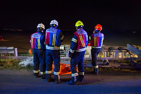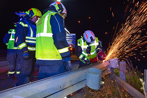 Um die folgenden Arbeiten zu erleichtern, wurde von der Feuerwehr ein weiterer Teil der Leitschiene demontiert.