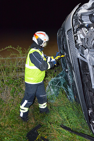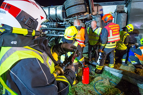 Die FF Wiener Neudorf wurde um 23:21 Uhr zur Menschenrettung mit einer eingeklemmten Person auf die Autobahn alarmiert. Bei Ankunft der Wiener Neudorfer Einsatzkräfte an der Unfallstelle war der Lkw-Fahrer bereits aus seinem Fahrzeug befreit und wurde von der Feuerwehr an das Notarztteam übergeben.