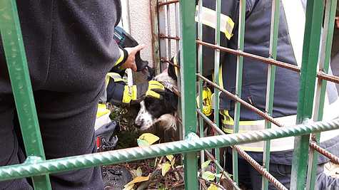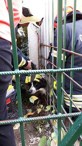 Ein Hund hatte sich am 18.11.2018 in Gumpoldskirchen mit dem Kopf derart in einem Zaungitter verfangen, dass er ohne professionelle Hilfe nicht mehr befreit werden konnte.