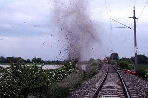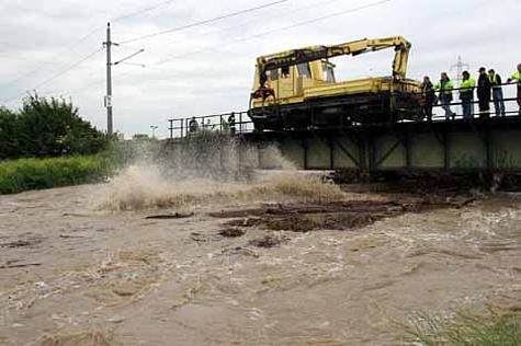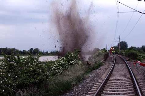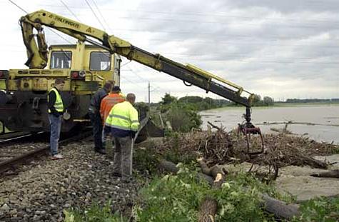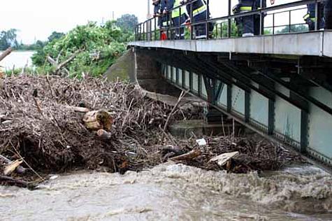 Laut Auskunft des ÖBB-Statikers hat das angestaute Treibgut mit einer Kraft von 60 Tonnen gegen den Mittelsteher der Brücke gedrückt und diese massiv gefährdet. Der Schienenverkehr auf der Bahnlinie ist eingestellt worden.