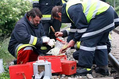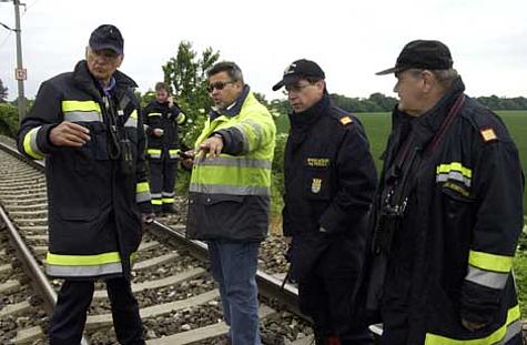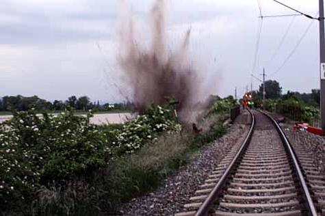 Die Spenggruppe 14 wurde alarmiert und stand zunächst in Achau in Bereitschaft. In den Abendstunden fiel dann nach Absprache mit einem Statiker der ÖBB die Entscheidung, eine Sprengung durchzuführen. Parallel dazu war ein leistungsfähiger Zweiwegebagger an die Einsatzstelle gebracht worden. Aufgrund des Lkw-Wochenendfahrverbots hatte ein Feuerwehrlotse den Schwertransporter von Fischamend nach Achau geleitet.