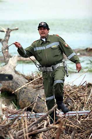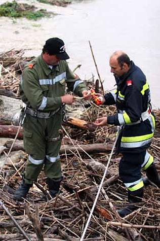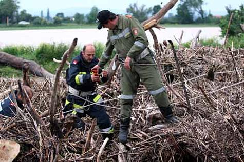 Von Spezialisten der Feuerwehr wurden überdies mehrere im Wasser querliegende Bäume - der mächtigste maß 15 Meter Länge - mit Motorkettensägen zerteilt.