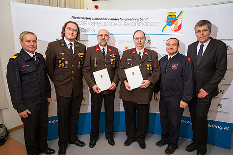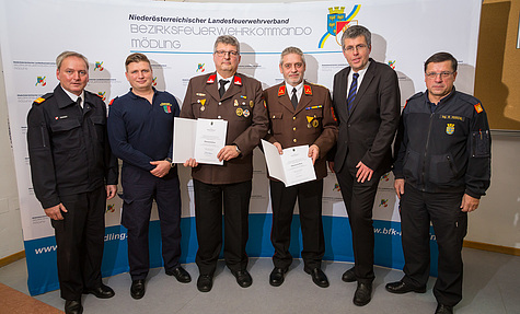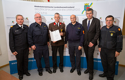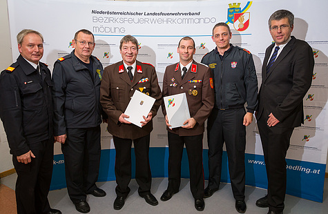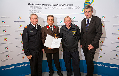 Der Perchtoldsdorfer Bürgermeister, Abg. z. NÖ Ltg. Martin Schuster, überreichte die Ehrenzeichen der NÖ Landesregierung als Dank für die langjährige Tätigkeit bei der Freiwilligen Feuerwehr.