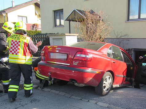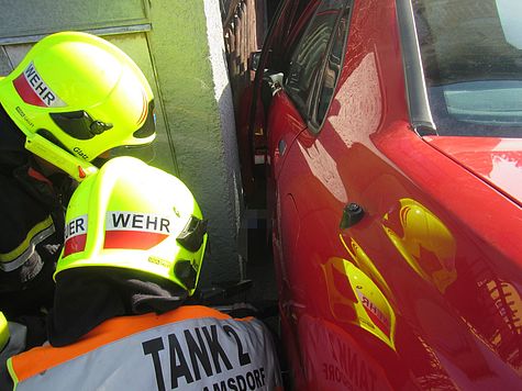 Mittels hydraulischem Spreizer, welcher zwischen einer gemauerten Wand und dem linken Hinterrad des Fahrzeuges positioniert wurde, konnte so viel Platz geschaffen werden, dass die Person rasch aus ihrer Zwangslage befreit und dem mittlerweile eingetroffenen Rettungsdienst übergeben werden konnte.