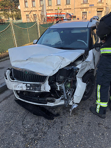 Bei der Kreuzung Ketzergasse /Popovicgasse kollidierten am Vormittag des 17. Februar 2019 zwei Fahrzeuge und blieben schwer beschädigt auf der Fahrbahn stehen.
