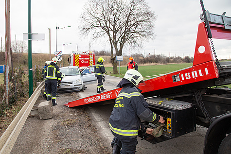 Seitens der Einsatzleitung wurde das Abschleppfahrzeug zum Einsatz nachalarmiert um den PKW dann mittels Last 1 zur Feuerwehr zu verbringen.
