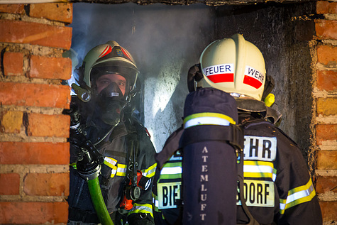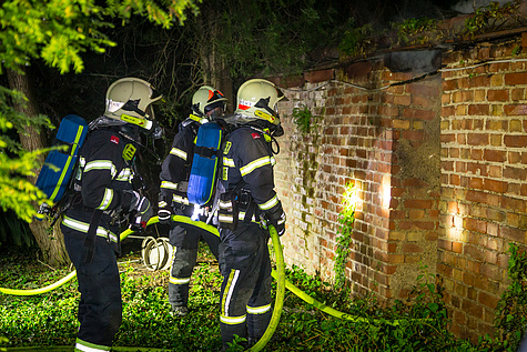 Die Freiwillige Feuerwehr Biedermannsdorf verschaffte sich Zutritt zu dem leer stehenden Nachbarhaus und begann in weiterer Folge über den Garten mit den Löscharbeiten.
