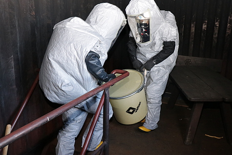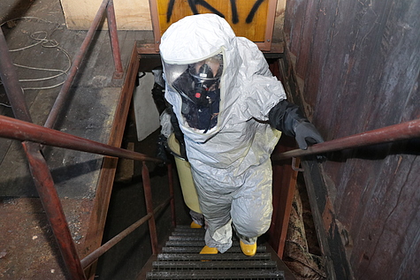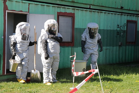 In einer Wohnung kam es zu einem Vorfall mit haushaltsüblichen Chemikalien, deren Freisetzung eine Gefahr für die Gesundheit darstellt. Diese Stoffe mussten durch die Einsatzkräfte unter Atemschutz gefunden und identifiziert werden. Nachdem der Atemschutztrupp die Informationen an die „Einsatzleitung Schadstoff“ weitergeleitet hatte, informierte diese die weiteren Kräfte über die Gefahren des Stoffes. Der Einsatzleiter ließ einen Trupp mit der Schutzstufe 2 ausrüsten und dieser Trupp entfernte den Schadstoff aus der Wohnung.