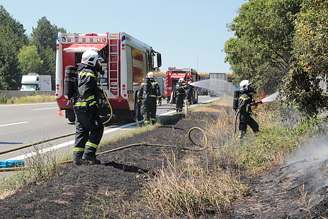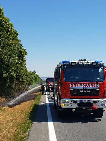 Bereits zum zweiten Einsatz binnen weniger Stunden wurde die Freiwillige Feuerwehr Brunn am Gebirge am späten Vormittag des 04.07.2019 auf die Wiener Außenringautobahn gerufen. Galt es um kurz vor zehn Uhr ein verunfalltes Fahrzeug zu bergen, meldeten wenig später mehrere Anrufer eine brennende Fahrbahnböschung im Bereich der Abfahrt Gießhübl.