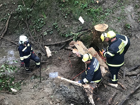 In Tauchen, einer Katastralgemeinde der Marktgemeinde Mönichkirchen mussten am 02. August 2019 Wurzelstöcke zur Verhinderung einer Verklausung in einem Wildbach gesprengt werden. Nach Entfernung mehrerer, den Abfluss behindernder, Bäume konnten die gut verankerten Wurzelstöcke mit herkömmlicher Forsttechnik nicht aus dem Bachbett entfernt werden.