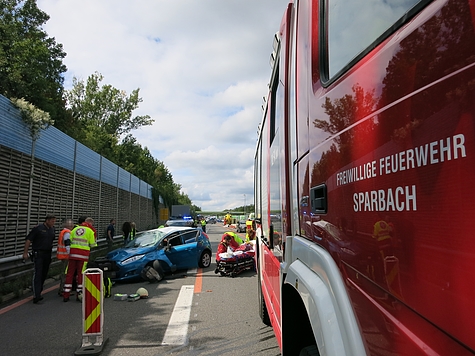 Beim Eintreffen der FF Sparbach konnte sich der Fahrer bereits selbstständig aus dem Fahrzeug befreien, die Beifahrerin befand sich jedoch noch im Fahrzeug. Durch die Verformung des PKW und die Verletzungen war es der Patientin nicht möglich, die Beifahrertüre zu öffnen. Durch den Einsatzleiter wurde im Zuge der Erkundung festgestellt, dass die Person zwar eingeschlossen aber nicht eingeklemmt ist. Durch Muskelkraft konnte die Mannschaft der Freiwillige Feuerwehr Sparbach die Türe in kürzester Zeit öffnen und so ein Zugang zum Patienten für den Rettungsdienst schaffen.