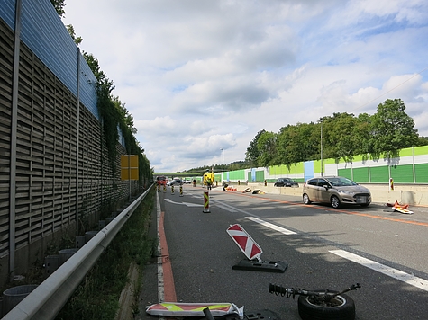 Ein PKW aus Großbritannien verunfallte am Nachmittag des 8. September auf der A21 in Fahrtrichtung Vösendorf. Am Beginn des Baustellenbereichs fuhr das Fahrzeug aus noch ungeklärter Ursache auf die Baustellenabsperrung aus Beton auf. In weiterer Folge überschlug sich der Ford vollständig und kam schwer beschädigt auf den Rädern am Pannenstreifen zu liegen.