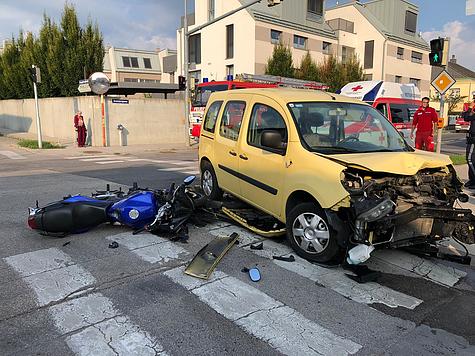 Am Vormittag des 16.09.2019 wurde die Freiwillige Feuerwehr Perchtoldsdorf zu einer Fahrzeugbergung alarmiert. Im Kreuzungsbereich Brunnergasse/Vierbatzstraße kam es zu einer Kollision zwischen einem Motorrad und PKW. Nach Unfallaufnahme und Versorgung der verletzten Lenker durch Polizei und Rotes Kreuz konnte mit den Aufräumarbeiten begonnen werden. Das Auto wurde von der Fahrbahn entfernt und gesichert auf einem Parkplatz abgestellt und das Motorrad wurde mit dem Last-Fahrzeug Perchtoldsdorf abtransportiert. Anschließend konnte die Fahrbahnreinigung durchgeführt werden und nach 1 Stunde rückten die Einsatzkräfte wieder ein.