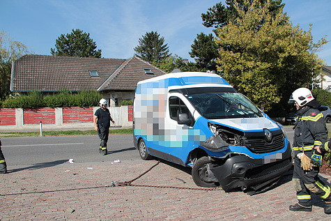 „T1 Fahrzeugbergung, PKW am Dach“, lautete die Alarmierung für die Feuerwehr Brunn am Gebirge am Vormittag des 23.09.2019. Aus unbekannter Ursache verlor der Lenker eines Firmenkleinbuses die Kontrolle über sein Fahrzeug, kam rechts von der Fahrbahn ab, touchierte dort einen Begrenzungsstein welcher das Fahrzeug zum Kippen brachte und kam unmittelbar neben einem weiteren Begrenzungsstein zu liegen.