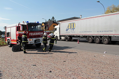 Anschließend wurde die Unfallstelle gereinigt und einer der Begrenzungssteine mittels Ladekran von „Rüst Brunn“ wieder an seine ursprüngliche Position gehoben.