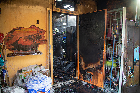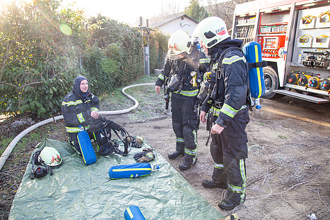 Bergung von mehreren Gasflaschen aus Brandobjekt
