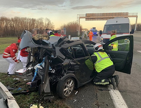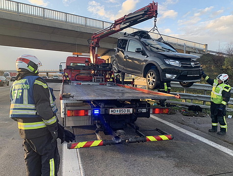 Samstagfrüh wurde die Mannschaft der Freiwilligen Feuerwehr Wiener Neudorf um 7:34 Uhr zu einem Verkehrsunfall mit eingeklemmter Person auf die Südautobahn alarmiert. Binnen kürzester Zeit rückten die Wiener Neudorfer Einsatzkräfte mit sechs Fahrzeugen und 22 Mann zum Unfallort in Fahrtrichtung Graz aus. Aus bisher ungeklärter Ursache waren ein Dacia und ein BMW kollidiert. Dabei wurde der Dacia rückwärts in die Leitschiene geschleudert. Das zweite Fahrzeug kam erst einige hundert Meter weiter zum Stillstand.