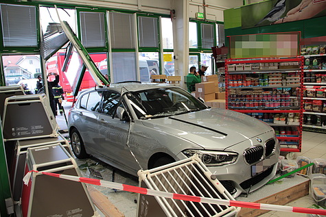 Aus ungeklärter Ursache krachte die Lenkerin eines silbernen BMW am Nachmittag des 27.11.2019 mit ihrem Fahrzeug in das Gebäude einer Tierhandlung. Da die Fassade nur aus Aluprofilen und Glas bestand, kam der PKW erst im Inneren des Geschäftslokales zu stehen. Glücklicherweise wurden, trotz des spektakulär aussehenden Unfalls, weder die Lenkerin noch Kunden oder Bedienstete des Zoofachgeschäftes verletzt.