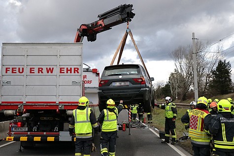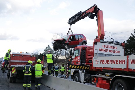 Nachdem alle Verletzen vorsorgt und in die umliegenden Krankenhäuser verbracht waren, konnte mit den aufwändigen Bergungsarbeiten begonnen werden. Zur Unterstützung der Fahrzeugbergung forderte der Einsatzleiter HBI Roman Janisch die Feuerwehr Wiener Neudorf mit dem Wechselladerfahrzeug an.