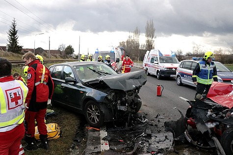 Am Stefanietag wurden die Mitglieder der Feuerwehr Guntramsdorf kurz nach 12 Uhr mittels Sirene und Pager zu einem Verkehrsunfall mit Menschenrettung auf die B17 alarmiert.