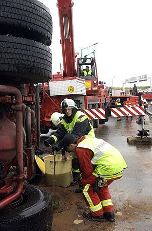 Seit 5.30 stand die Feuerwehr Wiener Neudorf am 8. September 2006 beim Autobahnknoten Vösendorf im Bergungseinsatz. Von der A2 aus Süden kommend war ein Sattelschlepper auf der Auffahrtsrampe zur Aussenringautobahn A 21 umgestürzt.