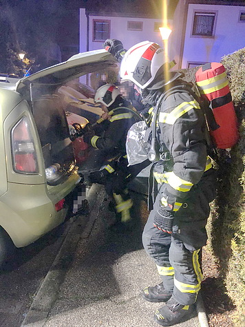 Vor dem Eintreffen der ausgerückten Hilfeleistungsfahrzeuge (HLF), konnte ein Fahrzeugbrand durch ein Mitglied der Feuerwehr entdeckt und mit Hilfe eines tragbaren Feuerlöschers bekämpft werden.