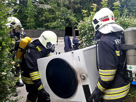 Mittels eines Handfeuerlöschers wurde der Kleinbrand abgelöscht und der betroffene Wäschetrockner anschließend ins Freie gebracht. Um die Wohnung vom Brandrauch zu befreien, wurde sie abschließend belüftet.