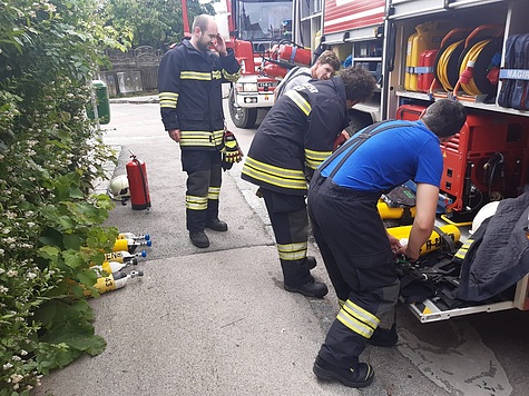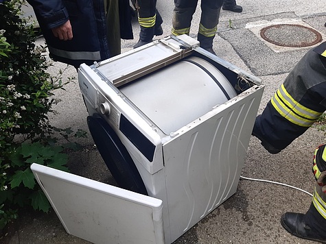 Dort angekommen informierte die Wohnungsinhaberin die Feuerwehr, dass ihr Wäschetrockner in Brand geraten sei und sie auf Grund der beträchtlichen Rauchentwicklung die Wohnung verlassen musste. Der bereits fertig ausgerüstete Atemschutztrupp begann unmittelbar mit der Erkundung des Brandherdes und konnte glücklicherweise feststellen, dass sich das Feuer auf keine weiteren Gegenstände ausgebreitet hatte.